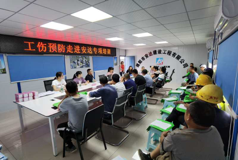 为提高我市建筑企业安全生产管理工作,9月19日,由绵阳市人力资源和社会保障局、绵阳市社会保险事务中心主办,绵阳市工伤预防培训机构--绵阳市第三人民医院承办的工伤预防培训走进绵阳安达建设有限公司。来自企业的安全管理人员、班组长、一线员工50余人参加了培训。
